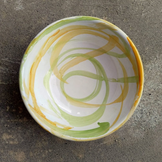 Here you can see a selection of the functional ceramics I design and create in my studio in Liguria using traditional Italian pottery techniques. Each piece is thrown on the potter’s wheel. After the bisque firing I glaze and hand paint my ceramics with maiolica technique. I aim to create ceramics that bring light and colour on the table – easy to hold and a pleasure to drink and eat from.